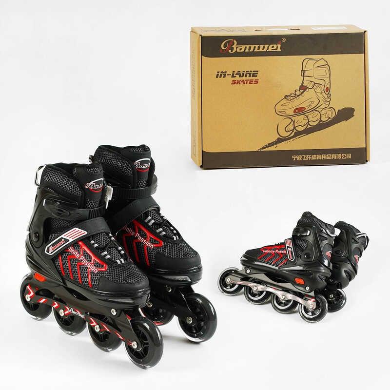 Дитячі підліткові ролики з розміром 39-42 90633-L Чорно-червоні, колеса PU — безшумні, підшипник ABEC-7