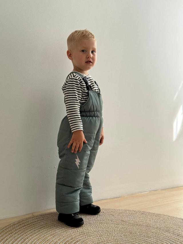 - Штани-напівкомбінезон усередині на силіконі - 200 г/м², який утримує тепло та дає можливість вільно та швидко переміщатися. Бретели із застібками "фастекс", які додатково регулюють висоту посадки. У штанинах допускається підкат, який також служить захистом від задування і може використовуватися, як регулятор зростання дитини + в штанах є захист від попадання снігу.